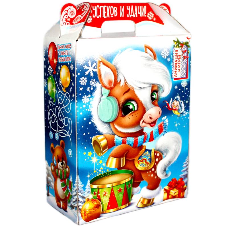 Сладкий новогодний подарок в картонной упаковке весом 820 грамм