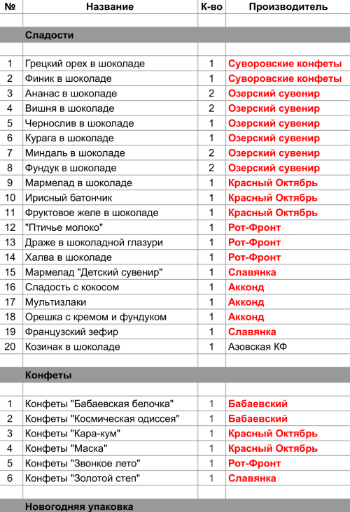 Опубликовано в Составы подарков